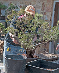 On went the workshop. Now you can see that larger trees are being worked on. Folks did not have to buy these trees, but they could have. It was also OK to bring your own stuff to work on.