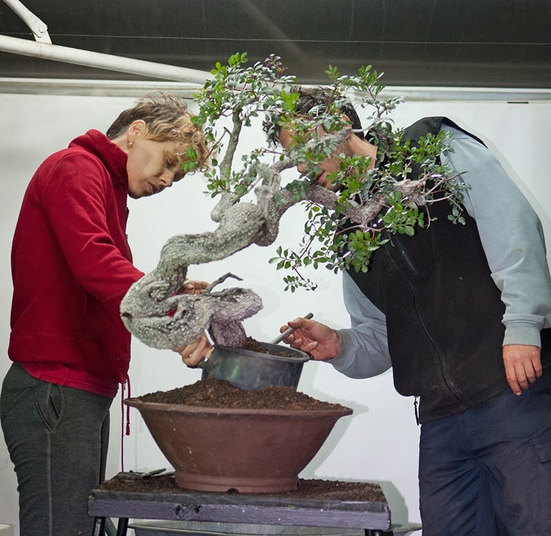 Marija and Andrija have this mazing collection there and do everything together. During the seminar without much ado we take one tree after the other from more than 100 specimen bonsai and do whatever can be done at that moment. We do a lot of subtle artistic corrections. First thorough tree discussion among there people who have strong opinions. Then a consensus. Then hands on doing what has to be done.